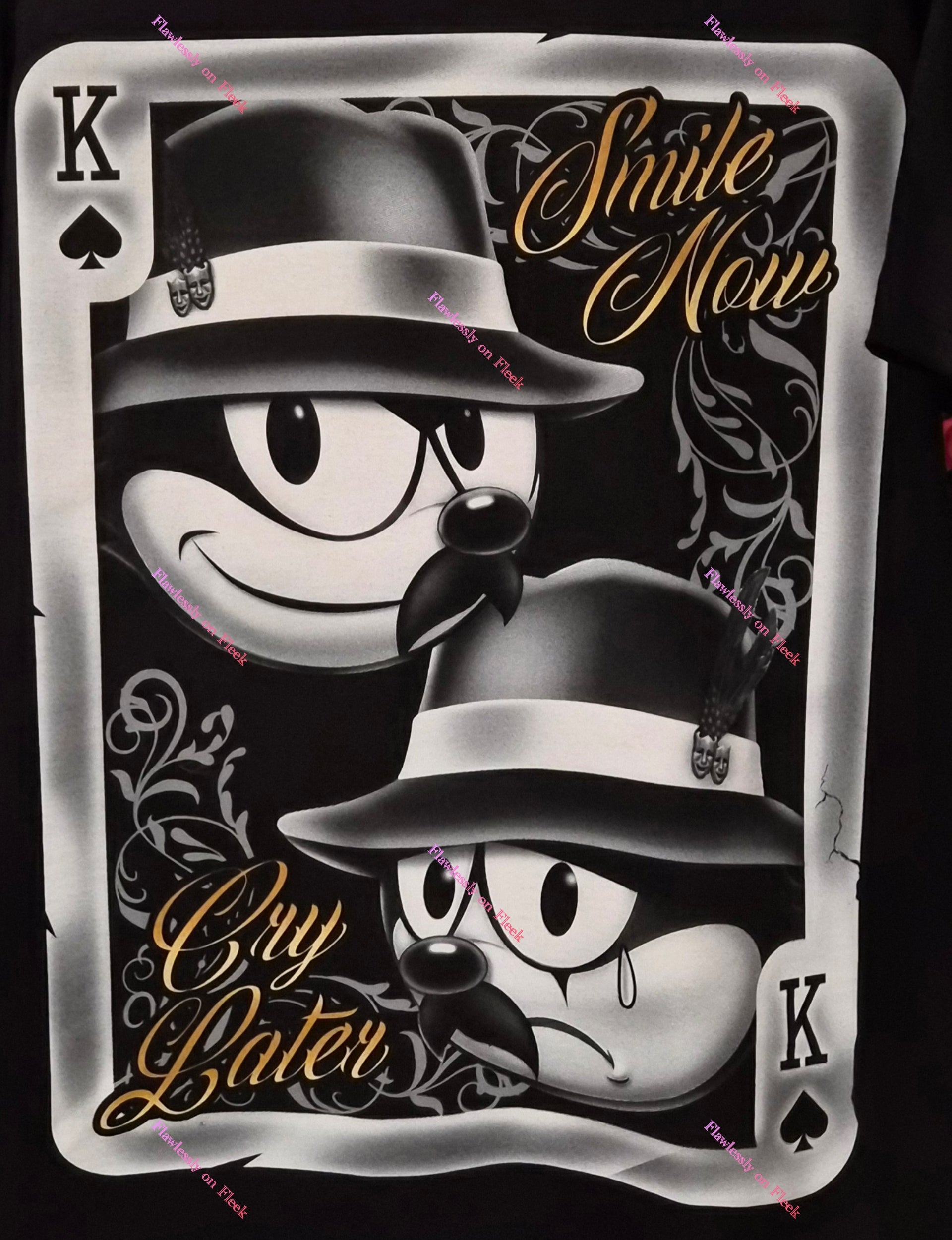 Introducing the Felix the Cat Smile Now Cry Later Playing Card T-Shirts, a perfect blend of nostalgia and style. Featuring the iconic Felix the Cat design, these shirts are a playful nod to classic cartoons, making them a must-have for fans and collectors alike.